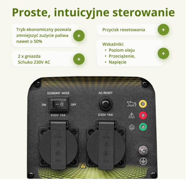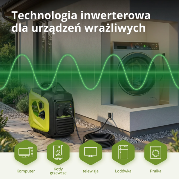 Technologia inwerterowa – stabilne napięcie 230 V / 50 Hz z czystą sinusoidą