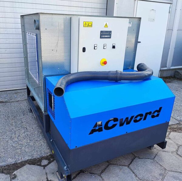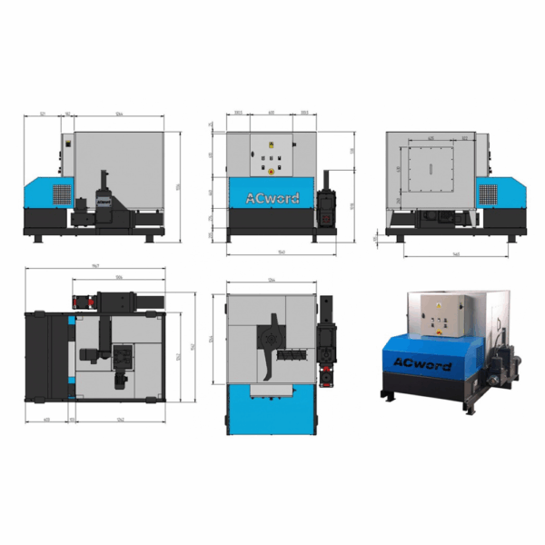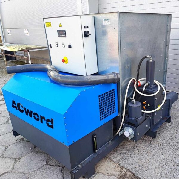 Brykieciarka AcWord AECO 100 – profesjonalna, hydrauliczna prasa do trocin, strużyn i pyłu drzewnego. Wydajność do 120 kg/h, automatyczne sterowanie.