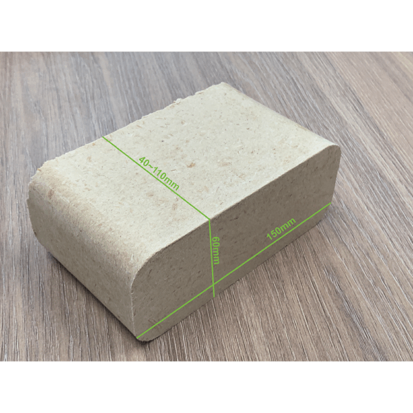 Gotowy produkt – brykiet – może być sprzedawany lub wykorzystany jako ekologiczny opał o wysokiej kaloryczności 4200–4500 kcal/kg i niskiej zawartości popiołu (0,2–0,4%).