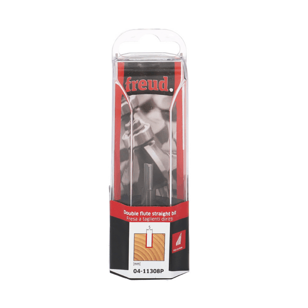 FREUD 04-11308P – profesjonalny frez prosty 5×12,7×50,8×8,0 z dwiema krawędziami tnącymi. Idealny do wpustów, krawędzi i obróbki wgłębnej drewna oraz płyt.
