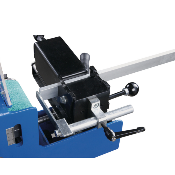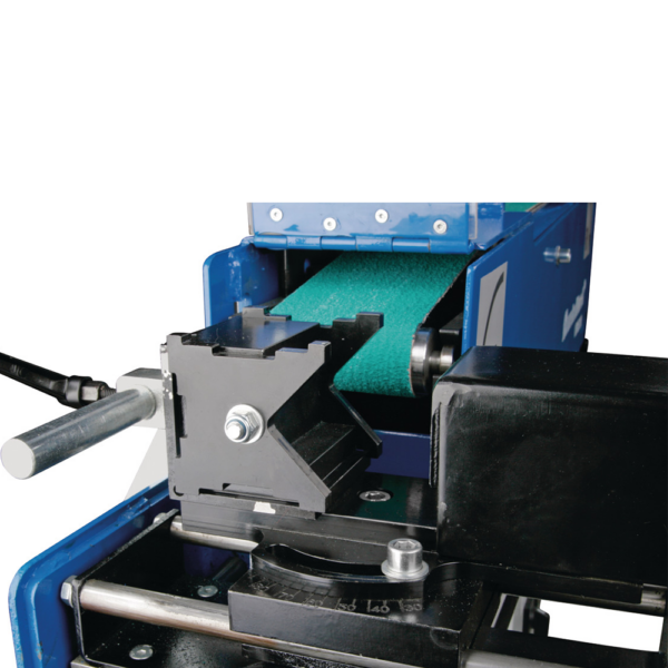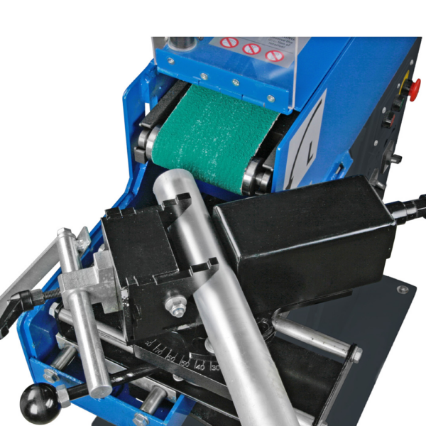 Urządzenie umożliwia szybkie przełączanie pomiędzy szlifowaniem rur a klasycznym szlifowaniem taśmowym, co znacząco zwiększa jego uniwersalność. Obrotowe szczęki mocujące zapewniają stabilne i bezpieczne mocowanie różnych kształtów materiału, a regulowany kąt szlifowania pozwala dopasować maszynę do konkretnego zadania.