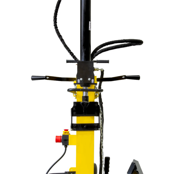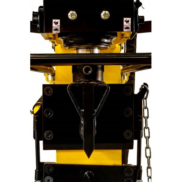 Pionowa konstrukcja zapewnia stabilność pracy, a zaawansowany układ hydrauliczny o ciśnieniu 210 bar gwarantuje płynne i skuteczne łupanie bez szarpnięć. Zastosowany podnośnik kłód z hakiem i łańcuchem znacząco ułatwia obsługę ciężkich polan i ogranicza wysiłek operatora.