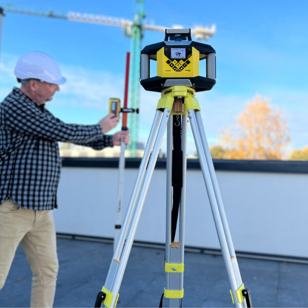 • precyzyjna regulacja wysokości – aluminiowe statywy z wysięgnikiem o maksymalnej wysokości 3,2 m do niwelatorów laserowych