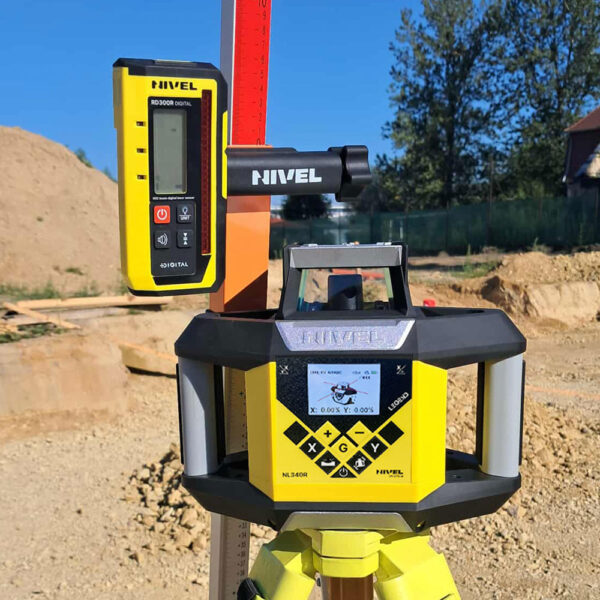NL340R pozwala pracować z płaszczyzną poziomą oraz z cyfrowym pochyleniem w jednej lub dwóch osiach. Dzięki temu doskonale sprawdza się przy wylewaniu posadzek, niwelacji terenu pod kostkę brukową, drogę czy boisko. Funkcja pionownika laserowego umożliwia dodatkowo wyznaczanie kątów prostych i precyzyjne przenoszenie punktów, co zwiększa dokładność prac konstrukcyjnych i instalacyjnych.
