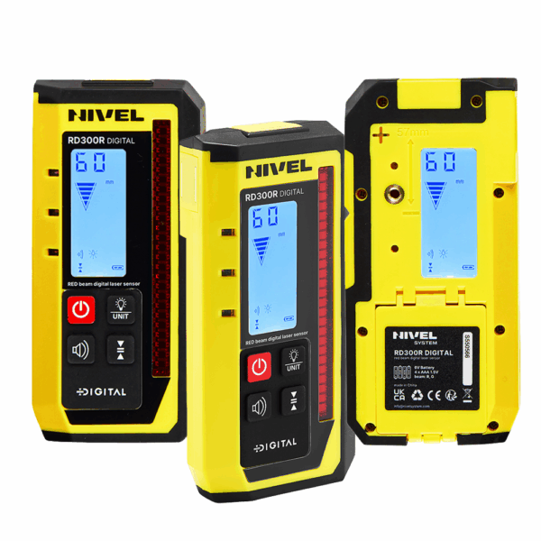 Model ten wyposażono w cyfrowy czujnik RD300 Digital, który automatycznie wyświetla różnicę wysokości w milimetrach. Dzięki temu niwelacja staje się szybsza, wygodniejsza i bardziej dokładna — bez konieczności odczytywania wartości z łaty.