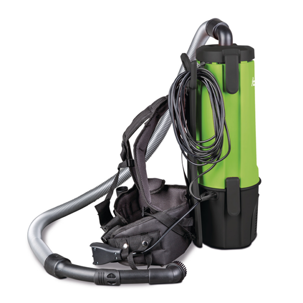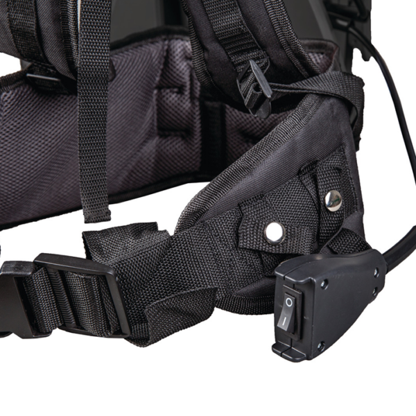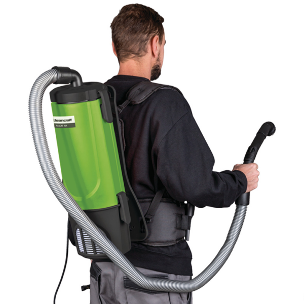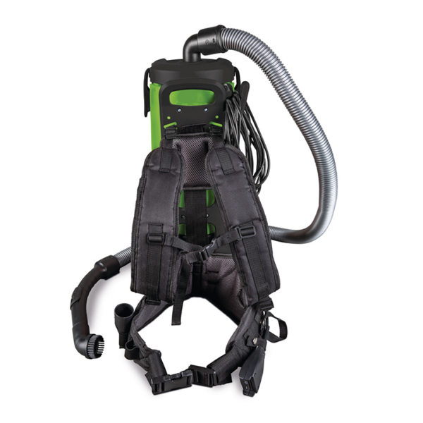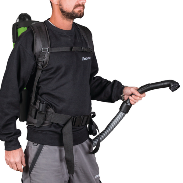 Konstrukcja plecakowa zapewnia pełną swobodę ruchu, co czyni ten model doskonałym rozwiązaniem do sprzątania autobusów, pociągów, samolotów, teatrów, kin, a także do pracy na wysokości – np. na drabinach podczas czyszczenia rynien lub usuwania pajęczyn z sufitów.
