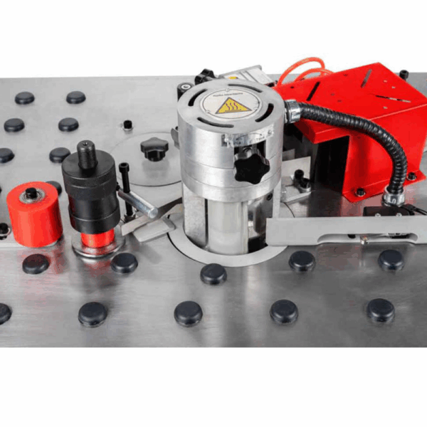 Maszyna podaje klej bezpośrednio na laminat i krawędź, zapewniając idealną przyczepność i estetyczny efekt końcowy. System automatycznego odcinania taśmy znacznie przyspiesza pracę i eliminuje błędy operatora. Elektroniczne ustawienie temperatury kleju gwarantuje stałe parametry, niezależnie od długości pracy i warunków otoczenia.