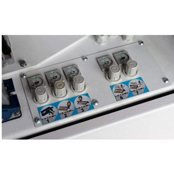 Sterowanie odbywa się za pomocą panelu PLC (Unitronics) umieszczonego z przodu maszyny. Wysokiej klasy komponenty, takie jak motoreduktor VARVEL oraz styczniki General Electric, gwarantują niezawodność i długą żywotność.