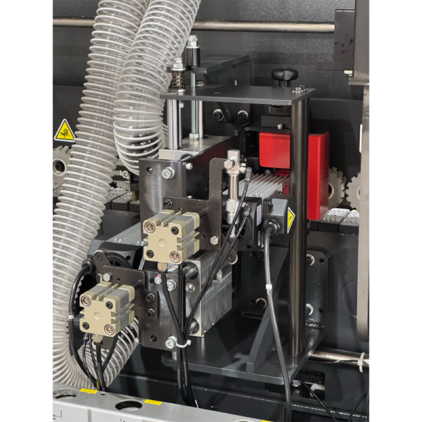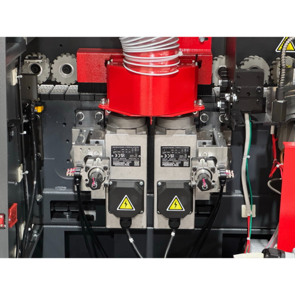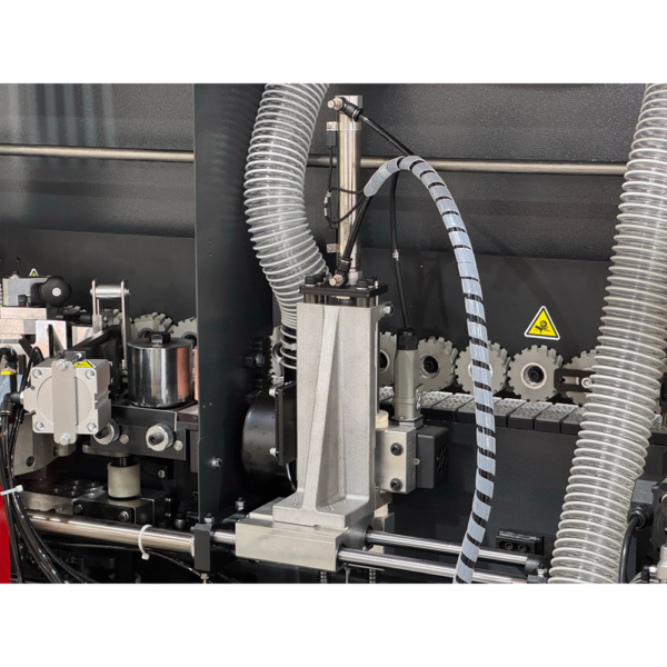 - Szybkość i efektywność: Posuw 9 m/min i moc 6,1 kW z dedykowanymi silnikami (frezowanie 1,5 kW, grzałka 1,315 kW) radzą sobie z intensywną pracą, oszczędzając czas.