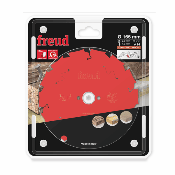 Profesjonalna tarcza Freud FR07C001H 165×20×2,0/14z do pilarek przenośnych, stworzona do cięcia drewna konstrukcyjnego z gwoździami, OSB i miękkiego drewna. Zęby z węglika TiCo™ i powłoka Perma-SHIELD® gwarantują długą żywotność i czyste cięcie. Cicha, odporna i precyzyjna – idealna do wymagających prac budowlanych.