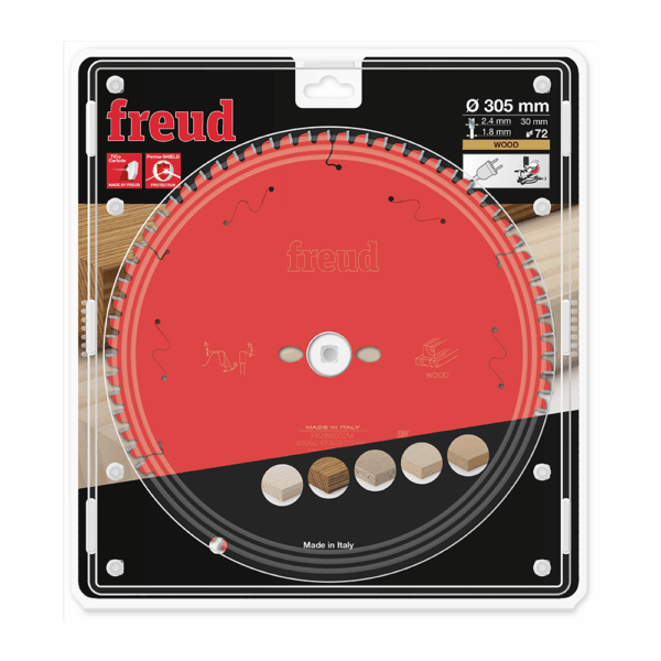 Piła 305×2,4×30/72z FREUD FR29W002M to najwyższej klasy tarcza przeznaczona do ukośnic, zaprojektowana specjalnie do precyzyjnego cięcia płyt HPL, Corian oraz innych materiałów kompozytowych.