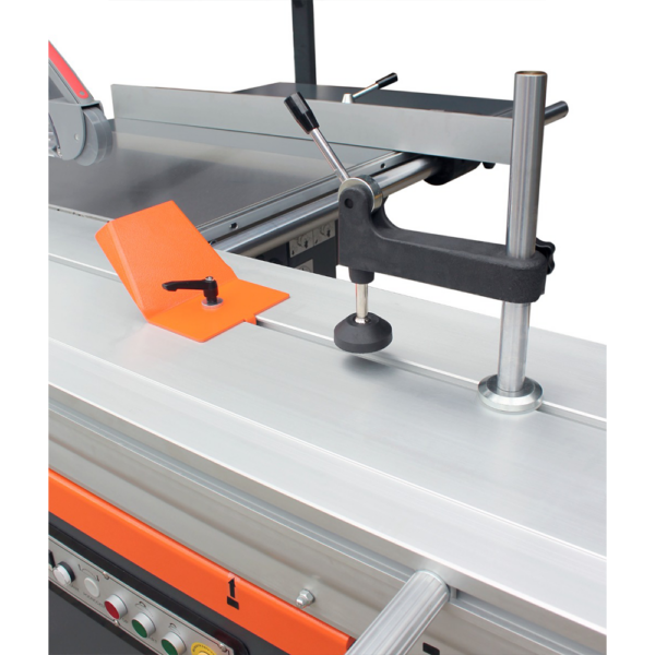 Duży stół ruchomy o skoku 3400 mm oraz maksymalna długość cięcia 1600 mm zapewniają komfortową obróbkę dużych elementów. Liniał wzdłużny umożliwia cięcie na szerokość do 1250 mm, a dokładny liniał kątowy pozwala na ustawienia w zakresie 90°–45° z dokładnością ±1°.