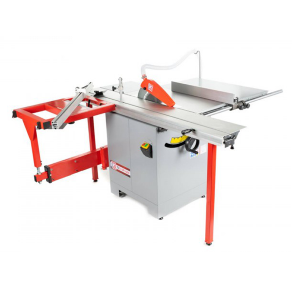 Maszyna wyróżnia się płynnym prowadzeniem wózka, stabilną konstrukcją żeliwną i bardzo dobrą jakością wykonania – idealna do cięcia formatowego, cięć poprzecznych pod kątem, cięć ukośnych i seryjnej produkcji elementów meblowych.