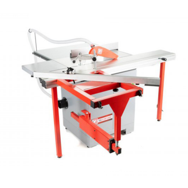 Holzmann TS315F1600 to solidna, precyzyjna pilarka formatowa (pilarka stołowa z wózkiem przesuwnym) dedykowana do warsztatów stolarskich, małych stolarni i firm produkujących meble na wymiar. Duży aluminiowy wózek przesuwny 1600 mm z rolką nośną na wysięgniku, żeliwny stół, tarcza Ø315 mm z regulacją wysokości i pochyleniem 45° oraz kompletny zestaw akcesoriów (przedłużenie, poszerzenie, ograniczniki, docisk, popychacze) zapewniają dokładne, czyste i bezpieczne cięcie płyt meblowych, litego drewna, laminatów i listew.