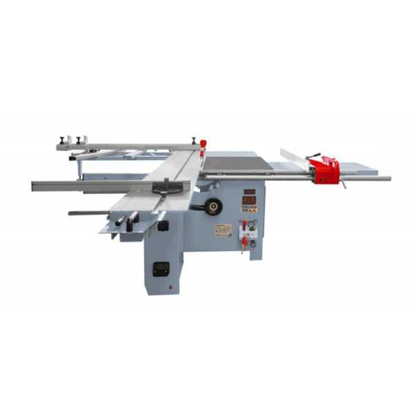 Holzmann FKS305V32TOP_400V to w pełni profesjonalna piła formatowa (krajzega) z aluminiowym stołem przesuwnym o długości 3200 mm, niezależnym podcinakiem i masywną konstrukcją stalowo-żeliwną. Zaprojektowana do dokładnego formatowania płyt meblowych, MDF, HDF, sklejki oraz drewna litego w warsztatach stolarskich i zakładach produkcyjnych.