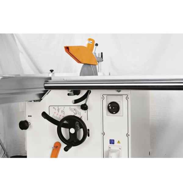 Piła umożliwia pracę z tarczą o średnicy 315 mm, zapewniając wysokość cięcia do 100 mm. Stabilny agregat tnący, zamocowany bezpośrednio do stołu żeliwnego, odpowiada za cichą pracę i wysoką precyzję cięcia. Płaszczyzna cięcia znajduje się na równi z wózkiem, co znacząco ułatwia obróbkę większych elementów.
