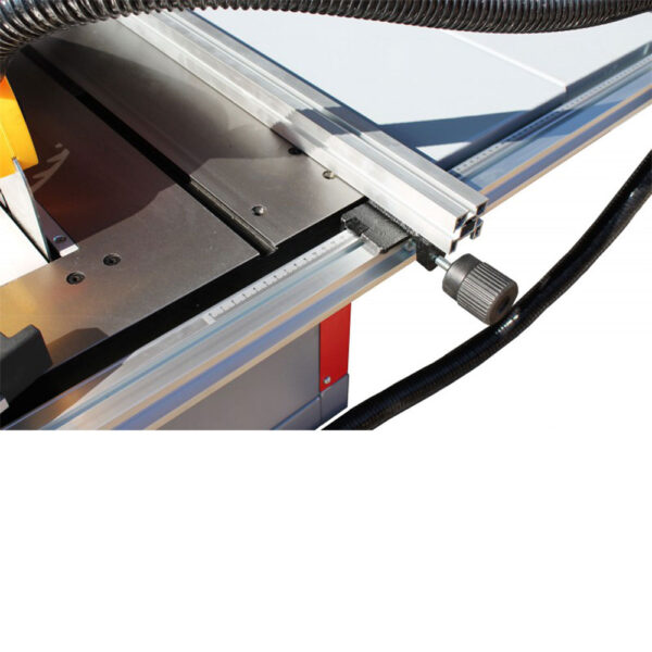 Aluminiowy przymiar z możliwością wychylenia – precyzyjne prowadzenie obrabianego materiału.