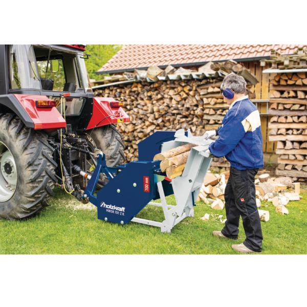 HWSR 701 Z K to mocna, niemiecka pilarka tarczowa z napędem pasowym od wału odbioru mocy (WOM), przeznaczona głównie do intensywnego cięcia drewna opałowego, pni i grubych gałęzi.