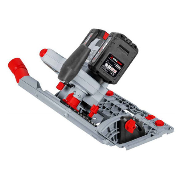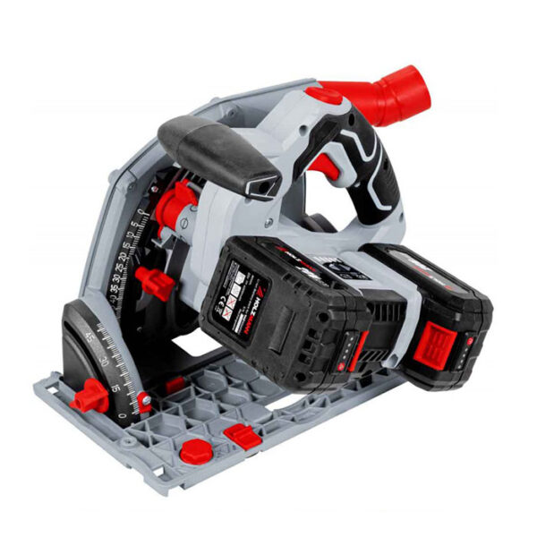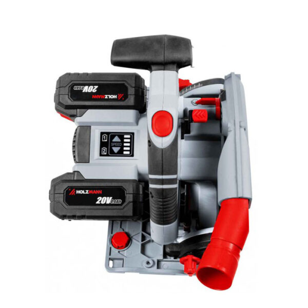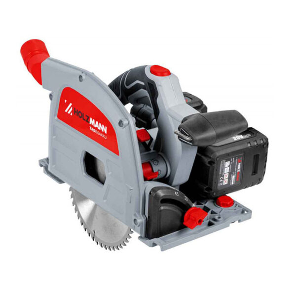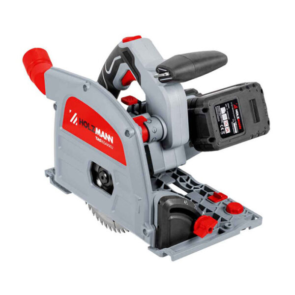 Holzmann TAS165AKKU – akumulatorowa pilarko-zagłębiarka z dwoma akumulatorami 20V 4Ah. Maksymalna głębokość cięcia 59 mm, regulacja kąta -1° do 47° i 5-stopniowa regulacja obrotów. Mobilność i precyzja bez kabla.