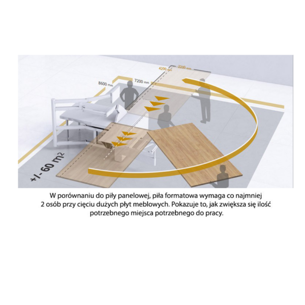 - Pionowa piła panelowa jest bezpieczniejszym narzędziem, niż piła panelowa, ponieważ jej zakryta tarcza zawsze pozwala uniknąć bezpośredniego kontaktu między operatorem, wózkiem piły i materiałami w każdej fazie procesu.