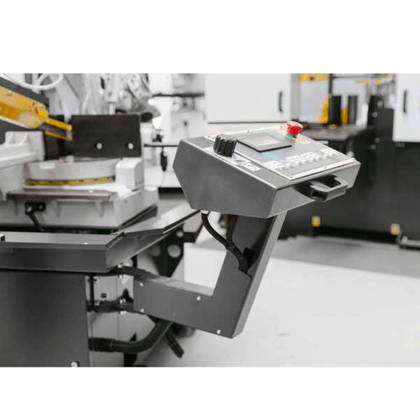 Piła wyposażona jest w hydrauliczny system sterowania, który automatycznie uruchamia imadło, opuszcza i podnosi ramię piły oraz steruje cyklem cięcia. Po zakończeniu cięcia maszyna automatycznie wraca do pozycji wyjściowej, co znacznie przyspiesza pracę przy cięciach seryjnych.
