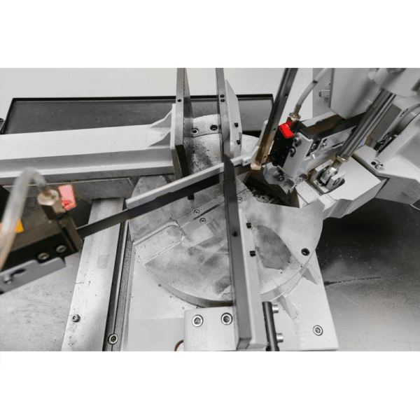 Ramię piły nachylone pod kątem 25° zwiększa trwałość taśmy, a kąt cięcia od -45° do +60° zapewnia dużą elastyczność. W standardzie znajdują się również system chłodzenia, szczotka do usuwania wiórów, monitoring brzeszczotu BRP i imadło hydrauliczne z szybkim zwolnieniem.