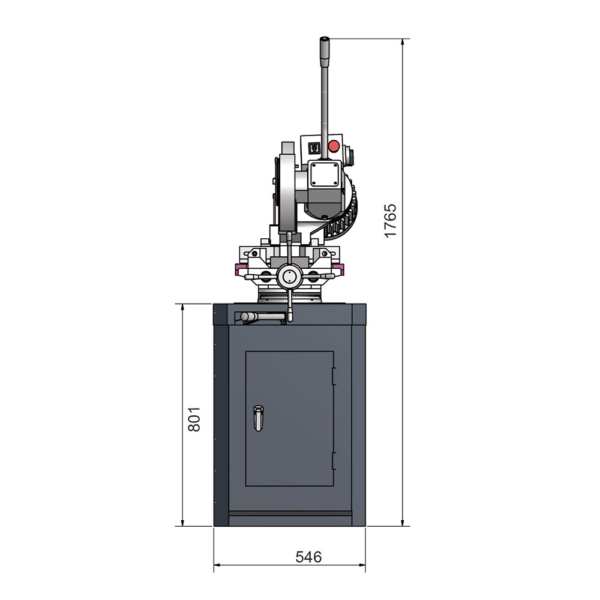 Maszyna posiada długi uchwyt roboczy z wbudowanym przyciskiem włącz/wyłącz, który umożliwia cięcie bez użycia dużej siły. Automatyczne włączanie pompy chłodziwa podczas cięcia poprawia jakość obróbki i wydłuża żywotność tarczy.