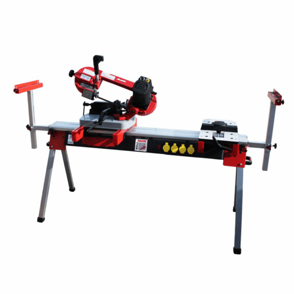 Piła taśmowa Holzmann BS 125M to kompaktowe, mobilne narzędzie idealne do cięcia żelaza, aluminium, miedzi, stali i PVC, z płynną regulacją obrotów, precyzyjną prowadnicą i kątem cięcia do 60°.