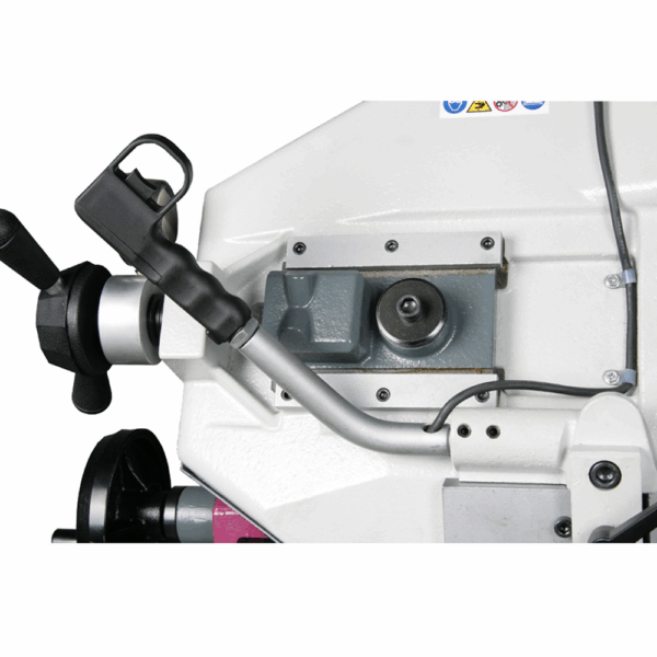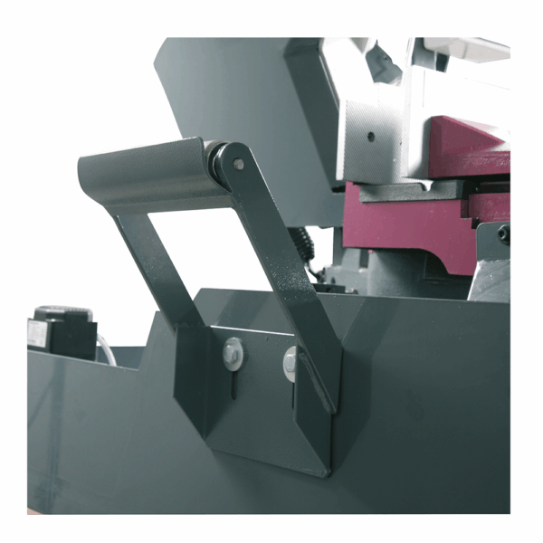 Przecinarka posiada mikrowyłącznik automatycznego wyłącznika krańcowego, który zatrzymuje pracę po zakończeniu cięcia. Imadło szybkomocujące z dźwignią i regulacją pokrętłem pozwala na szybkie mocowanie obrabianych detali, a zatrzymanie materiału ze skalą umożliwia powtarzalne cięcia seryjne.