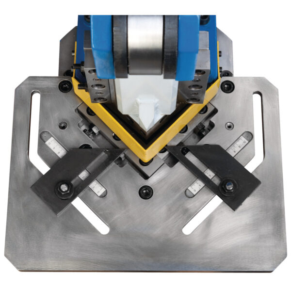 Maszyna została wykonana z wysokiej jakości żeliwa, co zapewnia dużą sztywność, stabilność oraz długą żywotność nawet przy intensywnym użytkowaniu. Regulowane ograniczniki powtarzalności oraz skala przy dolnej krawędzi pozwalają na szybkie i dokładne ustawienie wymiarów, co znacząco przyspiesza seryjną produkcję.