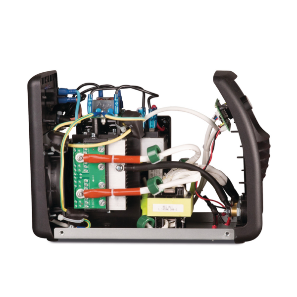 Hermetycznie zalakierowana płytka elektroniki skutecznie chroni urządzenie przed wilgocią i korozją, co umożliwia bezpieczną pracę w terenie, na budowie, w halach przemysłowych oraz w trudnych warunkach środowiskowych. Spawarka może pracować również z agregatem prądotwórczym.