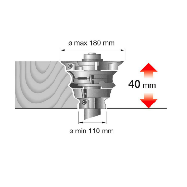 - Duża elastyczność narzędzi – wrzeciona pionowe i górne obsługują narzędzia ø 110–180 mm → możesz robić głębsze profile, frezowanie i struganie w jednym przejściu. Łatwa regulacja osiowa 40 mm pod stołem – zmiana profilu zajmuje minuty, nie godziny.
