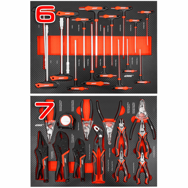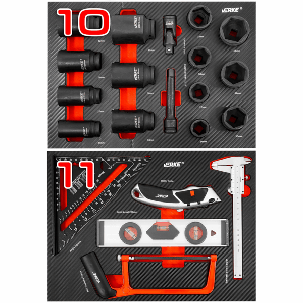 Szafka narzędziowa Verke Premium Line V33113 to zaawansowany, profesjonalny wózek warsztatowy przeznaczony dla wymagających użytkowników. Wyposażona w 12 szuflad na prowadnicach kulkowych, oferuje maksymalną organizację, stabilność i komfort pracy. Mocna, stalowa konstrukcja oraz mechanizmy dociągające zapewniają ciche, płynne i precyzyjne wysuwanie każdej szuflady.