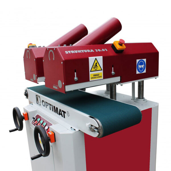 OPTIMAT STRUKTURA 30.02 – profesjonalna szczotkarka do drewna z dwiema niezależnymi szczotkami, regulacją prędkości posuwu i wysoką stabilnością. Idealna do strukturyzowania, postarzania i czyszczenia powierzchni.