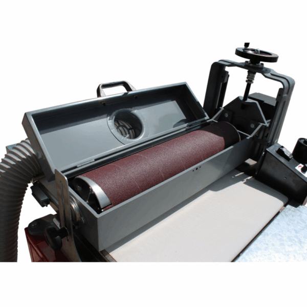 Szlifierka bębnowa Holzmann ZS 560U – stabilna, wydajna, z regulacją posuwu i możliwością przedłużenia stołu. Kompatybilna ze standardowymi pasami ściernymi.