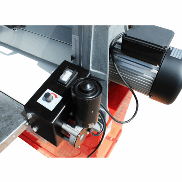 Dzięki wbudowanemu potencjometrowi można dokładnie dostosować prędkość przesuwu materiału, co wpływa na jakość szlifowania oraz bezpieczeństwo pracy z różnymi typami drewna.