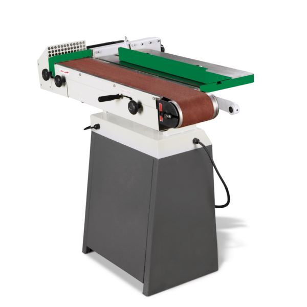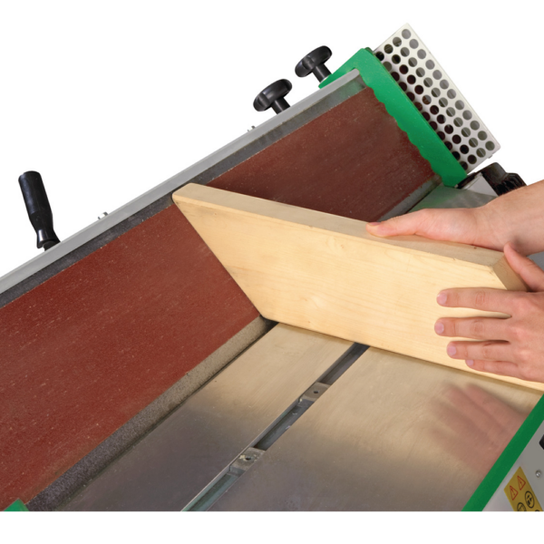 Maszyna wykonana jest z solidnych materiałów, a wysokiej jakości lakier proszkowy zabezpiecza urządzenie przed zarysowaniami i korozją – sprawdzi się w profesjonalnych zakładach stolarskich. - Szybka wymiana materiałów ściernych