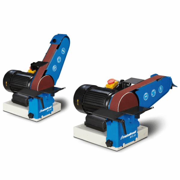 Szlifierka taśmowo-talerzowa METALLKRAFT BTS 51 z wychylnym ramieniem, regulacją taśmy, dwoma stołami i systemem odpylania. Idealna do precyzyjnego szlifowania.