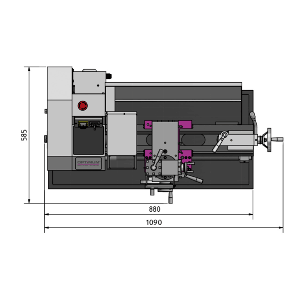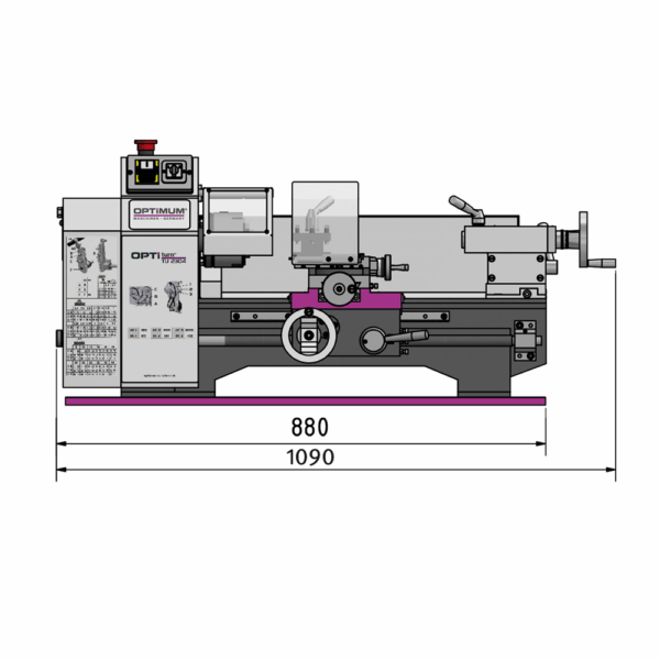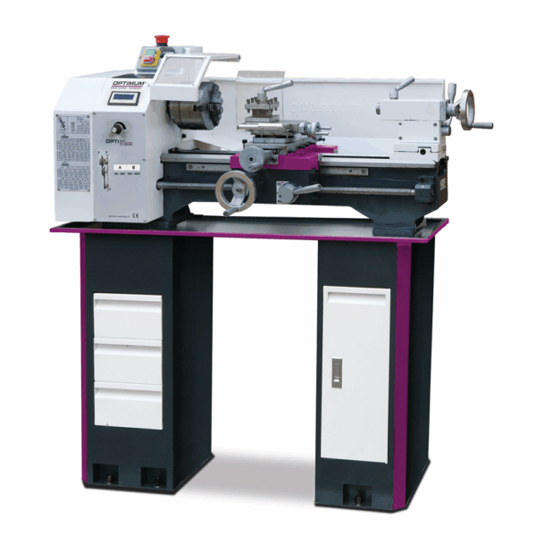 Tokarka do metalu OPTIMUM TU2304V – precyzyjna, kompaktowa tokarka z płynną regulacją obrotów i dokładnością współosiowości wrzeciona 0,009 mm.