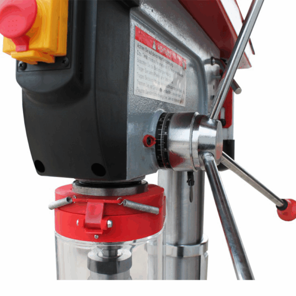 Dźwignia trójramienna z podziałką głębokości – precyzyjna kontrola wiercenia.