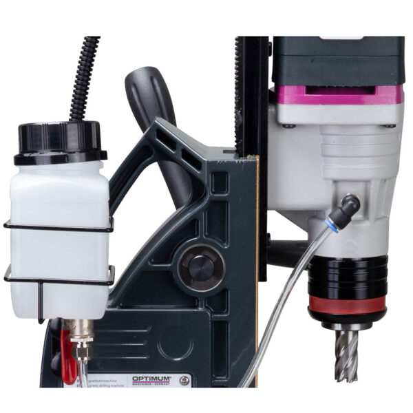 DM 35PF posiada automatyczny system smarowania wewnętrznego, który doprowadza chłodziwo bezpośrednio do końcówki wiertła rdzeniowego. Rozwiązanie to zwiększa efektywność wiercenia oraz znacząco wydłuża żywotność narzędzi i przekładni. Dodatkowo wewnętrzna funkcja samosmarowania chroni przekładnię przed nadmiernym zużyciem.