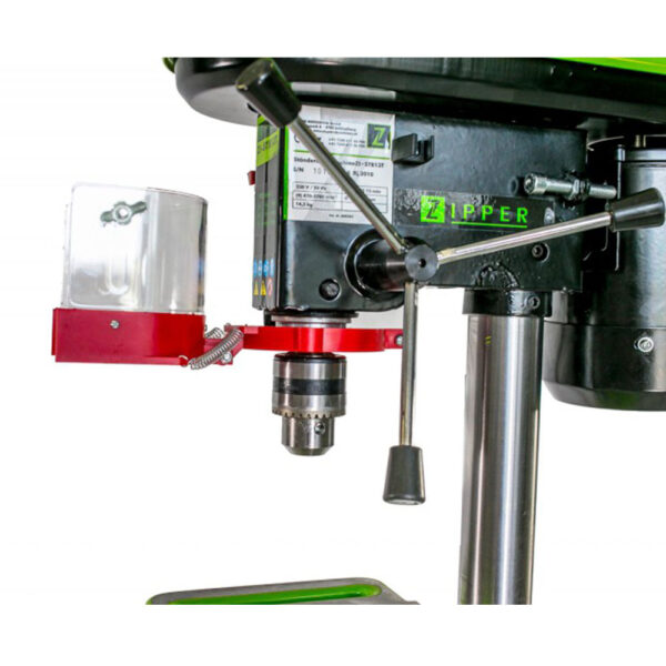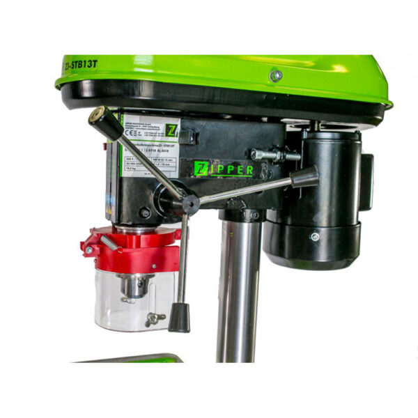 Wiertarka stołowa Zipper ZI-STB13T – lekka, kompaktowa i stabilna. Wyposażona w osłonę z pleksiglasu, ogranicznik głębokości, regulację wysokości i wydajność wiercenia do 13 mm.