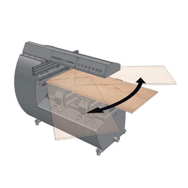 • Komfort pracy – konstrukcja typu „Cantilever” + szerokie stoły stalowe ułatwiają obsługę długich i ciężkich paneli, a napęd panelu znajduje się z przodu maszyny.
