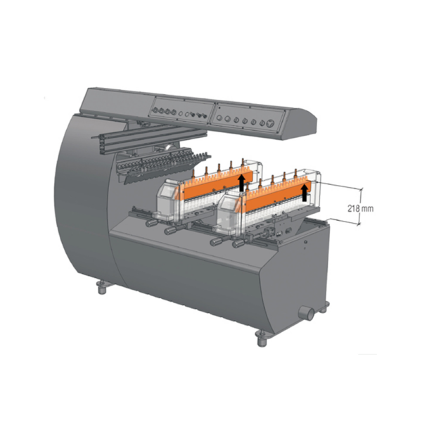 • Każda głowica posiada 23 wrzeciona w rozstawie 32 mm (rozstaw skrajnych 704 mm)