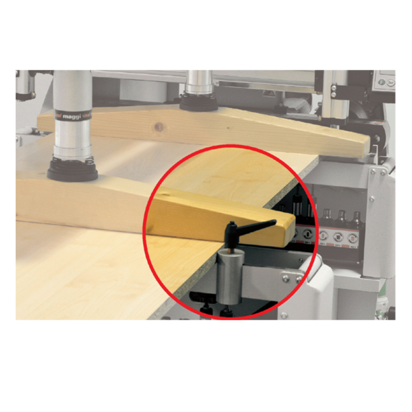 • Solidność i trwałość – maszyna ma masywną, prostą konstrukcję (750 kg), jest wykonana z wysokiej jakości komponentów i zaprojektowana do intensywnej, codziennej pracy w stolarni.