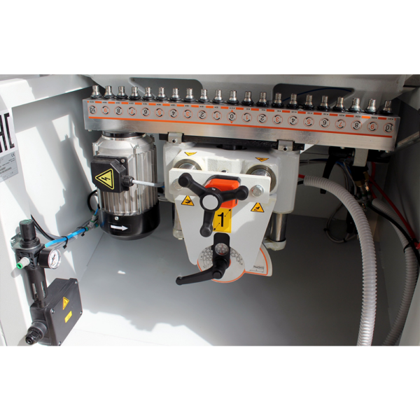 • Kompaktowe wymiary – mimo dwóch głowic maszyna zajmuje niewiele miejsca w warsztacie (1015 × 990 × 1570 mm).