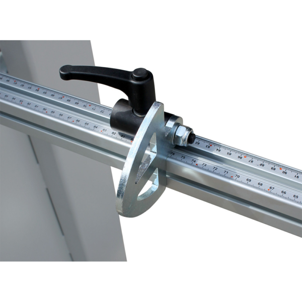 • 2 uchylne prowadnice stołu z żeliwa, regulowane w skali metrycznej za pomocą szkła powiększającego
