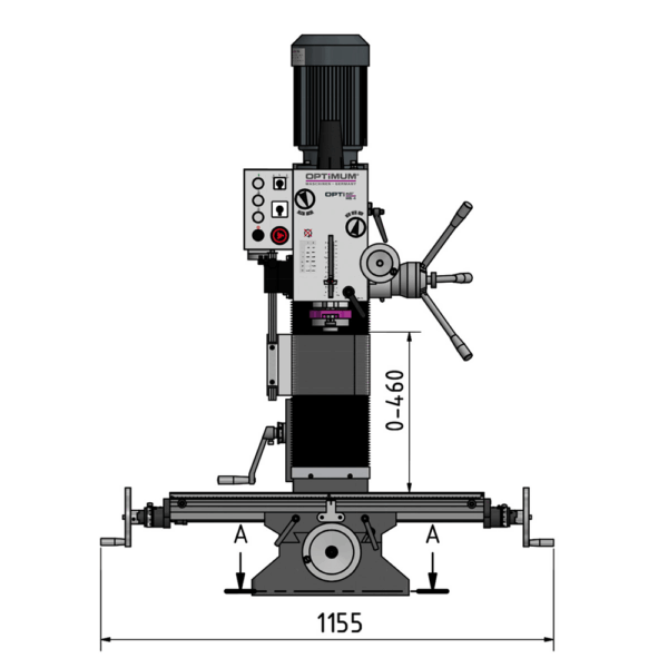 Przemysłowa wiertarko-frezarka OPTIMUM MB4 z napędem 400V i regulacją 95–3200 obr./min. Solidna odlewana konstrukcja, stół krzyżowy, przekładnia w kąpieli olejowej i silnik o wysokiej kulturze pracy.