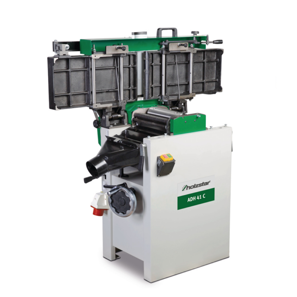 Wyrówniarko-grubiarka Holzstar ADH 41C 400V – solidna strugarka 408 mm z 3 nożami, ciężkim stołem żeliwnym i mocą 3 kW. Precyzyjne wyrównywanie i grubowanie szerokiego drewna litego w warsztacie.